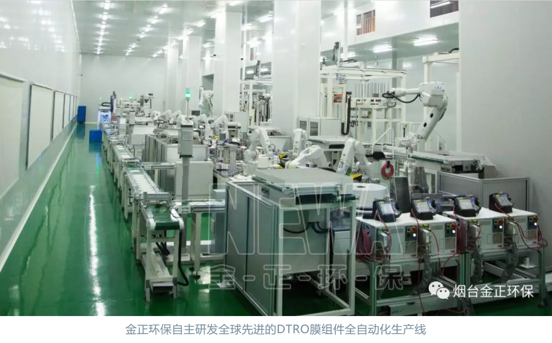 這是金正環保自主研發全球先進的DTRO膜組件全自動化生產線,該生產線集成了工業物聯網、工業大數據、工業機器人、機器視覺、智能物流等最先進的智能技術,可實現日產400-500支膜組件,較行業內目前普遍的人工組裝方式提高了10倍左右的產能,解決了產品生產規模化、標準化和運輸的難題。